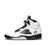 White and black leather Air Jordan 5 Retro sneakers from jordan featuring a round toe, a lace-up front fastening, an oversize tongue, a flat sole, a jumpman logo at the tongue, a stitched number 75 on each heel and transparent ...
